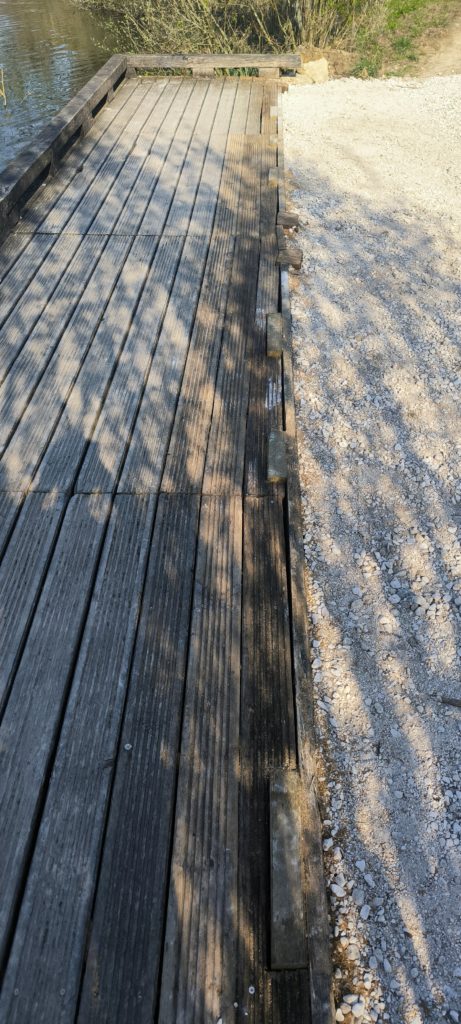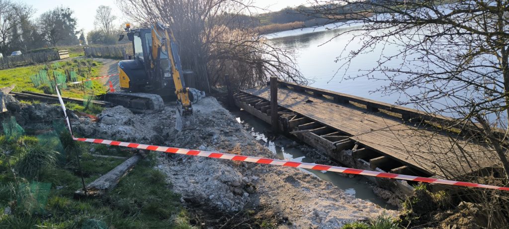 À la suite des crues récentes, le ponton de l’Étang du Coq a été déstabilisé et le cheminement accessible aux personnes à mobilité réduite (PMR), réalisé en 2020, s’est en partie affaissé. Des dégradations, notamment la formation de cavités, rendaient ce secteur potentiellement dangereux pour les usagers.